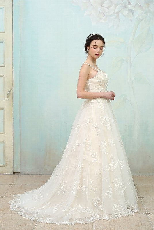 海外ウェディングでは主流のベージュカラーなので大人っぽくレースや装飾を綺麗に見せてくれます。